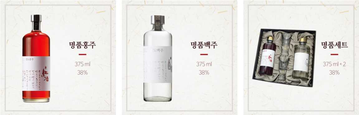 | 명품홍주 | 명품백주 | 명품세트 | |